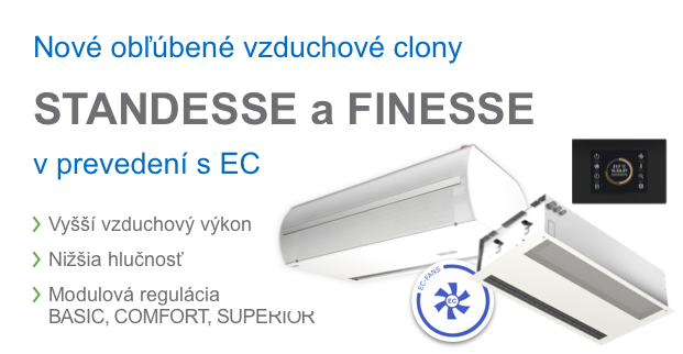 Nová generácia vzduchových clôn STANDESSE a FINESSE s EC motormi a modulovou reguláciou AirGENIO